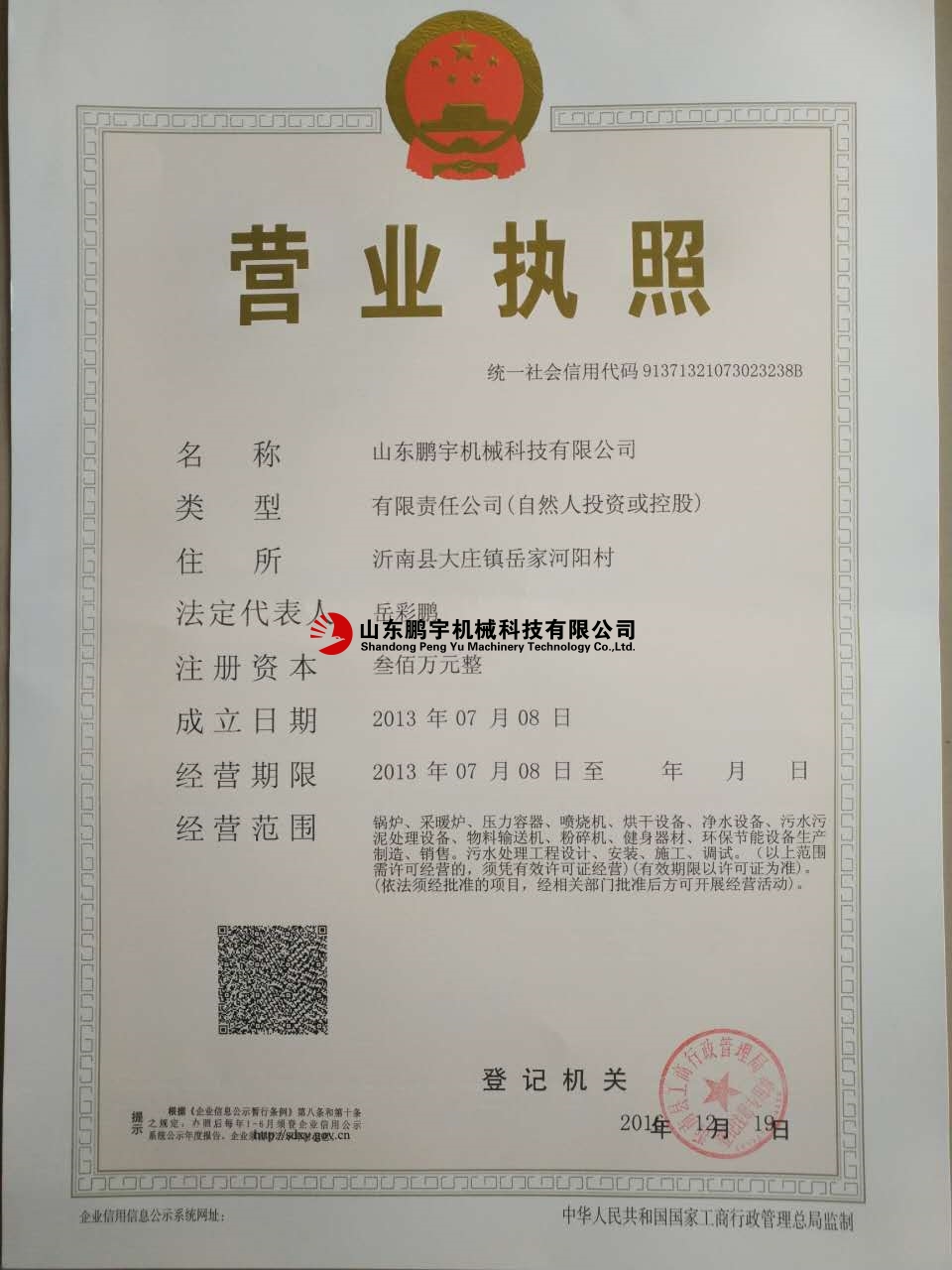 沂南鵬宇機(jī)械廠注冊(cè)成立