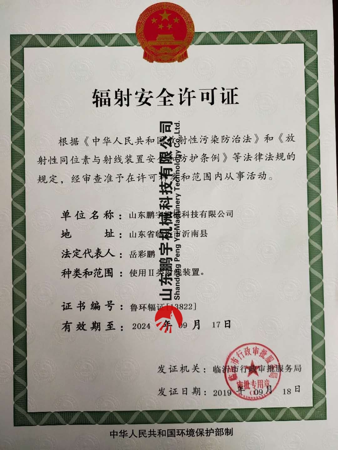 公司更名為沂南鵬宇機(jī)械科技有限公司