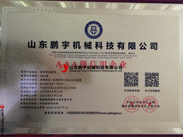 被評(píng)為AAA級(jí)信用企業(yè)